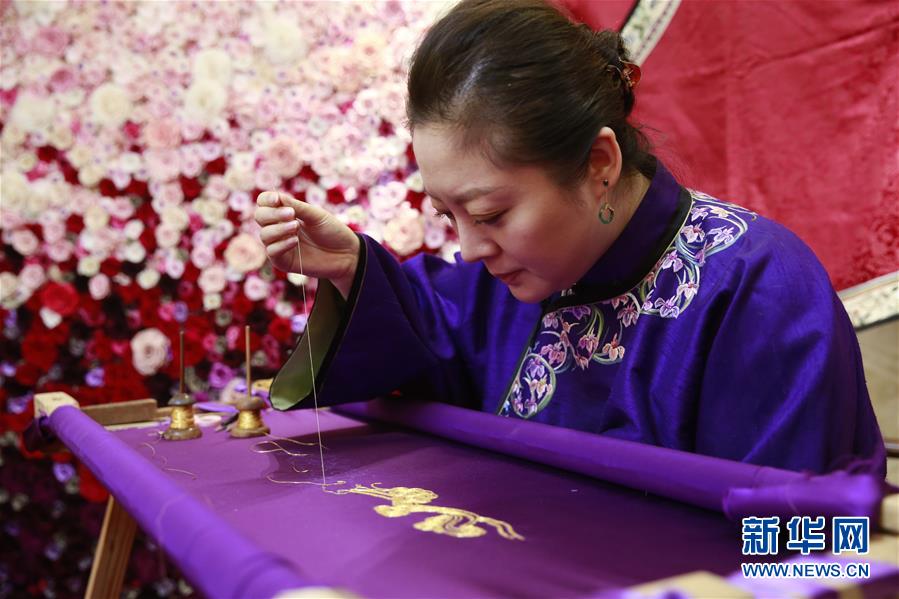 1月12日,在北京“碧泓云想”服裝設(shè)計工作室,高定服裝設(shè)計師畢紅在為中式服裝制作刺繡紋樣。畢紅設(shè)計的中式服裝以棉、麻、真絲等面料為主。春節(jié)來臨,其團隊加班加點為顧客趕制中式服裝。