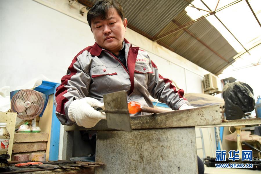 1月12日,孫云毅在制作雞油黃琉璃藝術品。 新華社記者王凱攝