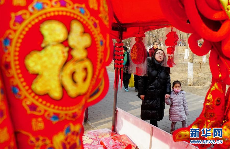 1月12日,游客在年貨大集上觀看民俗展覽。