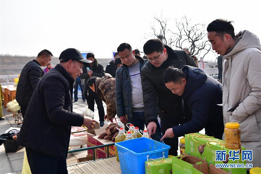 1月13日,游客和附近村民在展銷活動上選購土特產。  新華社記者 馮大鵬 攝