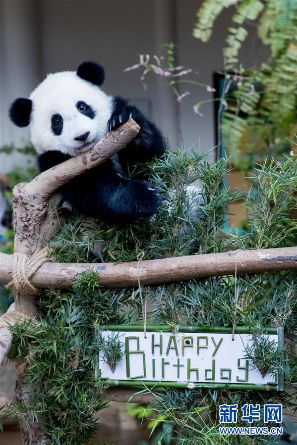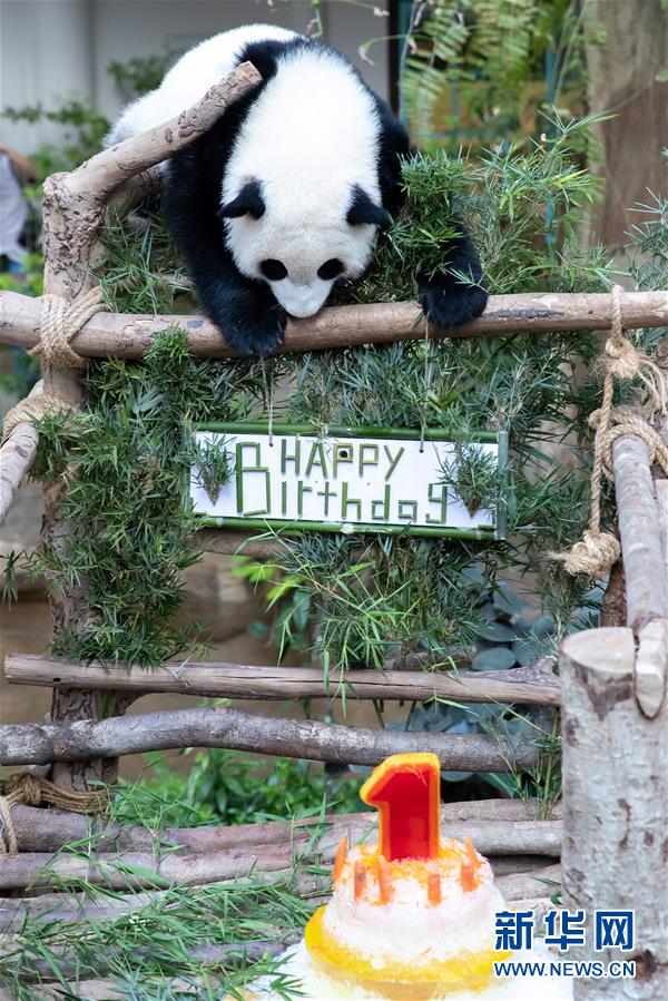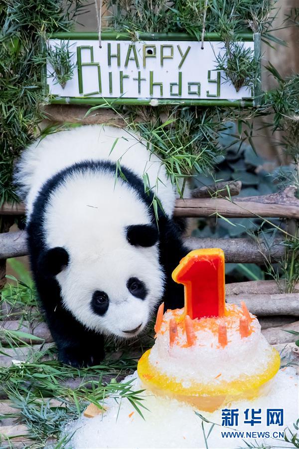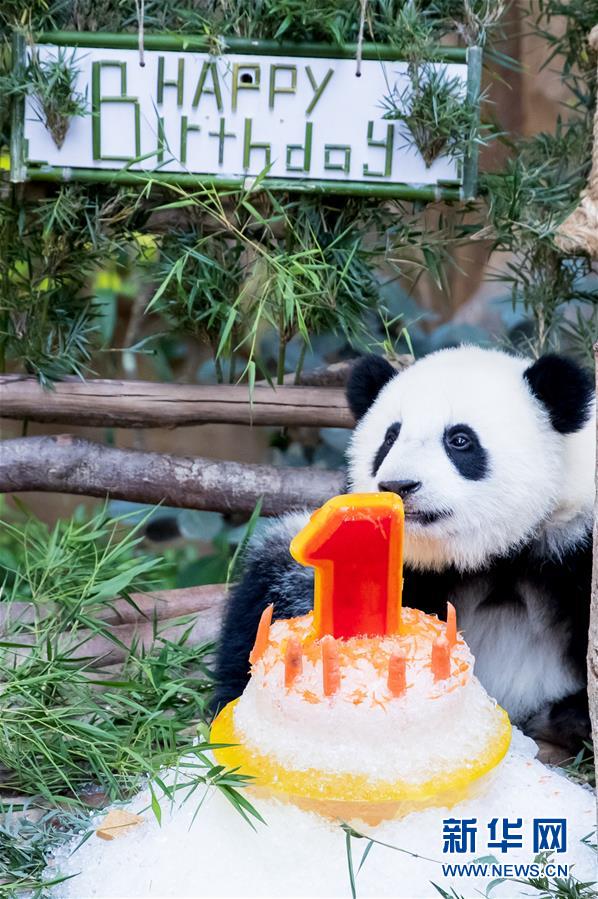 馬來西亞國家動物園14日為中國旅馬大熊貓“興興”和“靚靚”所生的第二只雌性大熊貓寶寶慶祝一周歲生日。