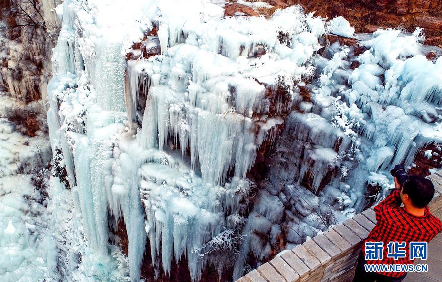1月9日,游客在云臺(tái)山景區(qū)拍攝冰瀑景觀。 近日,受降溫影響,位于河南省焦作市的云臺(tái)山景區(qū)出現(xiàn)冰瀑景觀,奇特壯美。 新華社記者 馮大鵬 攝