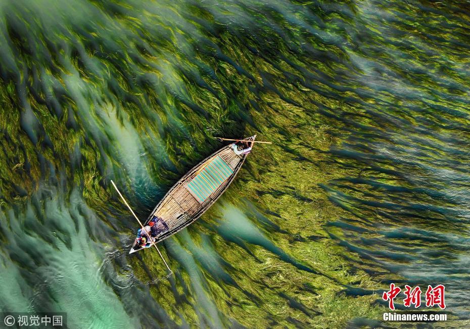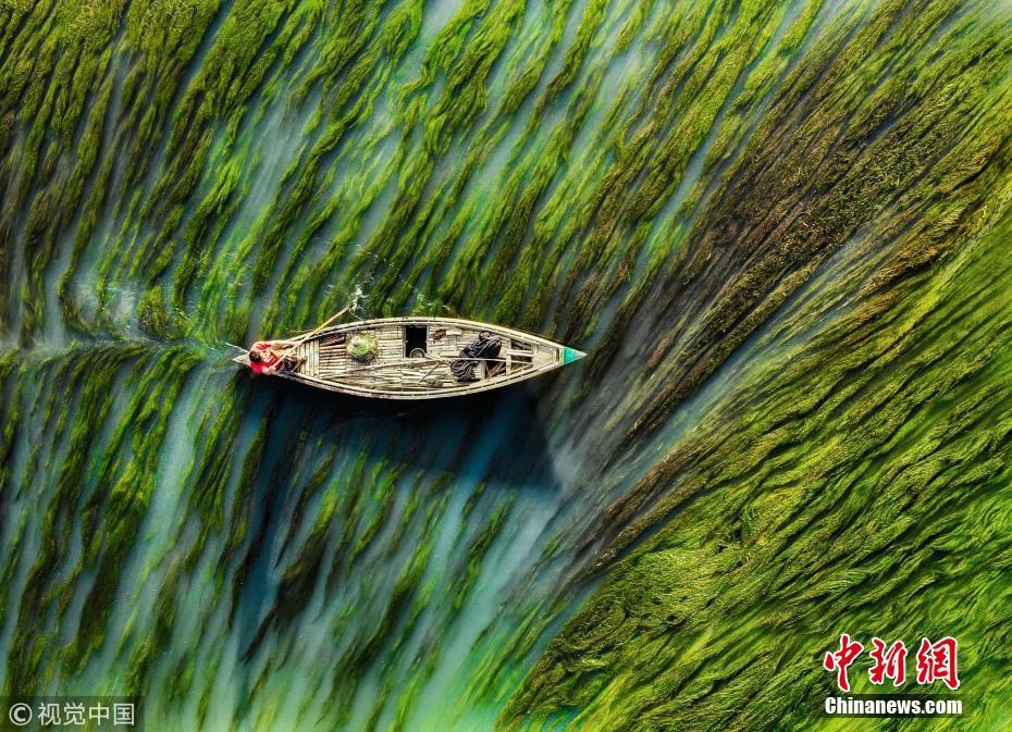 中國(guó)新聞網(wǎng)1月14日訊(具體拍攝時(shí)間不詳),孟加拉國(guó)烏拉帕拉,漁船在水流和藻類的映襯下前行,畫面看起來(lái)就像水彩畫一般。圖片來(lái)源:視覺(jué)中國(guó)