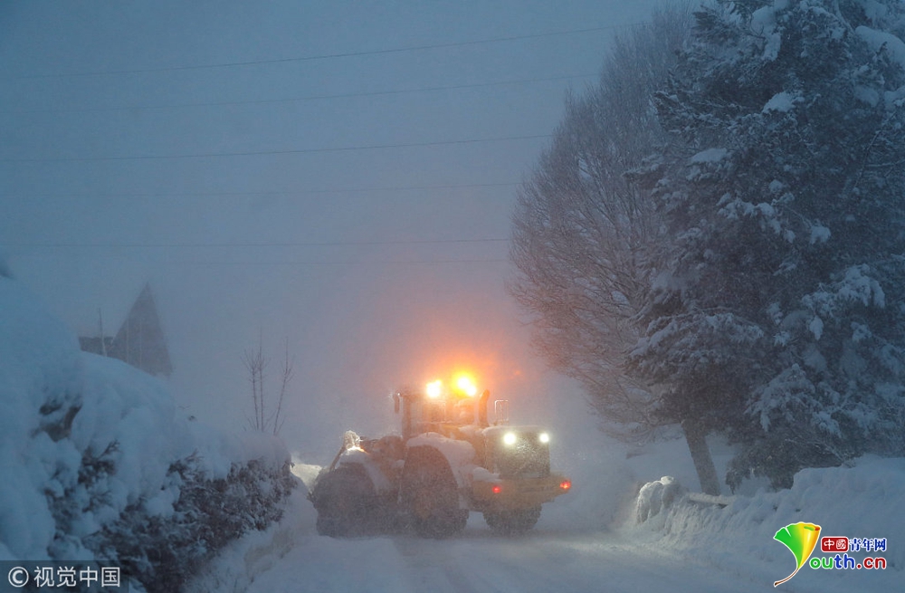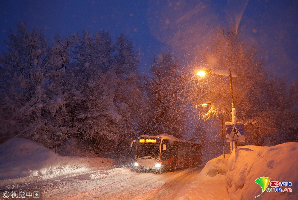 德國多地大雪紛飛 火車被困半路進(jìn)退不得