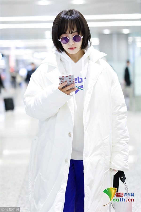 1月15日,上海,宋茜現(xiàn)身機(jī)場。她身穿白色羽絨服搭配紫色運動褲造型清爽有型,梳著齊耳短發(fā)秒變妹妹頭,可愛吸睛。抬腿扯褲腿動作呆萌,難道是秋褲沒穿好,要扯一下,這動作也是非常接地氣了。