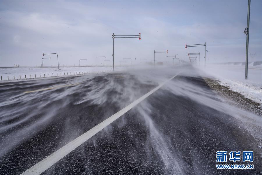 這是新疆瑪依塔斯風(fēng)區(qū)內(nèi)出現(xiàn)的“白毛風(fēng)”現(xiàn)象(1月15日攝)。 瑪依塔斯風(fēng)區(qū)位于新疆西北部額敏縣境內(nèi)。這里東西風(fēng)交替頻繁,一年大風(fēng)天數(shù)超過150天,是世界上罕見的暴風(fēng)雪災(zāi)害地段。駐守在這里的新疆塔城公路管理局額敏分局瑪依塔斯應(yīng)急保障基地,近年來連續(xù)裝備拋雪機(jī)等冰雪搶險救災(zāi)裝備,有力地保障了這條道路的交通安全。 新華社記者趙戈攝