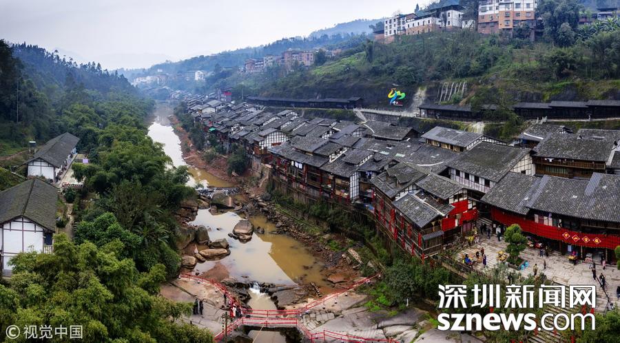 訊 2019年1月26日,重慶中山古鎮(zhèn),880桌“千米長宴”5萬人共品年味。880多張席桌在老街屋檐下一字?jǐn)[開,“千米長宴”正式開席。