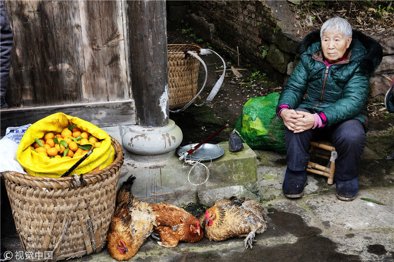 2019年1月26日,重慶中山古鎮(zhèn),880桌“千米長(zhǎng)宴”5萬(wàn)人共品年味。當(dāng)?shù)刳s來(lái)的村民。