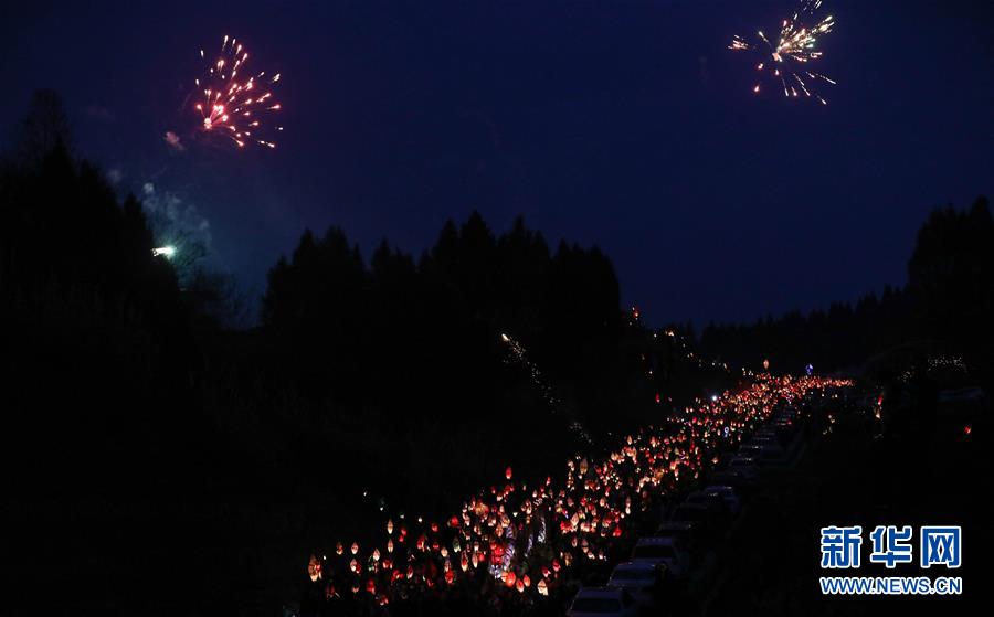 2月18日,群眾在四川省南充市嘉陵區(qū)金寶鎮(zhèn)點亮“蠐蟆燈”。 當日是農(nóng)歷正月十四,夜幕降臨后,川渝等地數(shù)萬名群眾在四川省南充市嘉陵區(qū)金寶鎮(zhèn)匯聚,點亮“蠐蟆燈”,敲著鑼鼓唱著歌謠,將“蠐蟆”送到幾公里外的田邊或者河邊燒掉,祈福健康平安。星星點點的燈光在鄉(xiāng)間小路閃爍移動,場面壯觀熱烈。 “送蠐蟆”祈福這一習俗源于清朝,歷經(jīng)演變成為川東北地區(qū)一個古老而神秘的地方民俗節(jié)日。 新華社記者 江宏景 攝