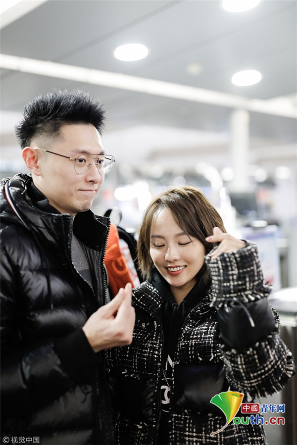 2月20日,上海,張嘉倪、買超深夜現(xiàn)身機場,啟程前往2019秋冬米蘭時裝周。張嘉倪依偎在老公懷里十分小女生,兩人對鏡頭比心狂撒狗糧,與粉絲親切合影簽名,十分接地氣。