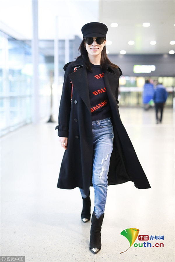 2019年2月28日,上海,佘詩曼現(xiàn)身機場。她頭戴禮帽,身穿黑色大衣走路帶風氣場強,單手托腮甜笑瞬間暖人心。