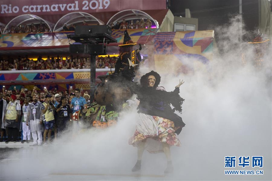 3月3日,在巴西里約熱內(nèi)盧,特級組桑巴舞校演員參加狂歡節(jié)游行。 3月3日晚,2019年里約熱內(nèi)盧狂歡節(jié)特級組桑巴舞校在桑巴大道開始花車巡游表演。 新華社記者李明攝