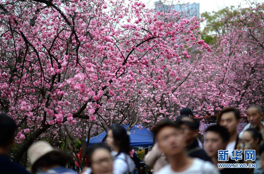游人在昆明圓通山公園觀賞盛開的櫻花(3月16日攝)。近日,云南省昆明市迎來櫻花盛開的時(shí)節(jié)。昆明圓通山公園的數(shù)千株櫻花燦爛綻放,吸引了市民和游客前來觀花賞景。新華社記者藺以光攝