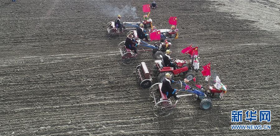 3月16日在拉薩市達(dá)孜區(qū)唐嘎鄉(xiāng)拍攝的開(kāi)耕儀式現(xiàn)場(chǎng)(無(wú)人機(jī)拍攝)。 當(dāng)日,西藏各地男女老幼身著節(jié)日盛裝,駕著一輛輛由彩旗、花朵裝扮一新的拖拉機(jī),涌向待墾的農(nóng)田,載歌載舞迎來(lái)一年一度的開(kāi)耕儀式。 新華社發(fā)(孫非 攝)