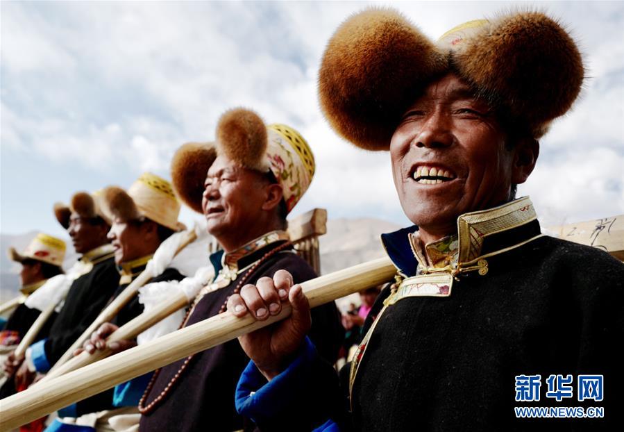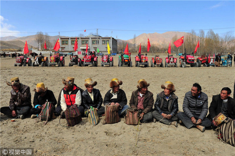 3月16日,山南市乃東區(qū)門中崗村村民在開(kāi)耕儀式上。 當(dāng)日,西藏各地男女老幼身著節(jié)日盛裝,駕著一輛輛由彩旗、花朵裝扮一新的拖拉機(jī),涌向待墾的農(nóng)田,載歌載舞迎來(lái)一年一度的開(kāi)耕儀式。 新華社記者 覺(jué)果 攝