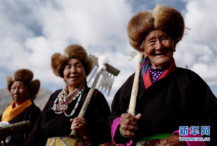 3月16日,山南市乃東區(qū)克松社區(qū)居民在開(kāi)耕儀式上。 當(dāng)日,西藏各地男女老幼身著節(jié)日盛裝,駕著一輛輛由彩旗、花朵裝扮一新的拖拉機(jī),涌向待墾的農(nóng)田,載歌載舞迎來(lái)一年一度的開(kāi)耕儀式。 新華社記者 普布扎西 攝