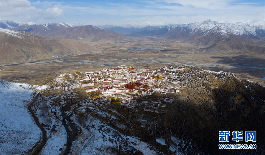 近日,拉薩周邊出現(xiàn)降雪天氣,坐落在達(dá)孜縣海拔3800米的旺波日山上的甘丹寺雪后景致迷人。