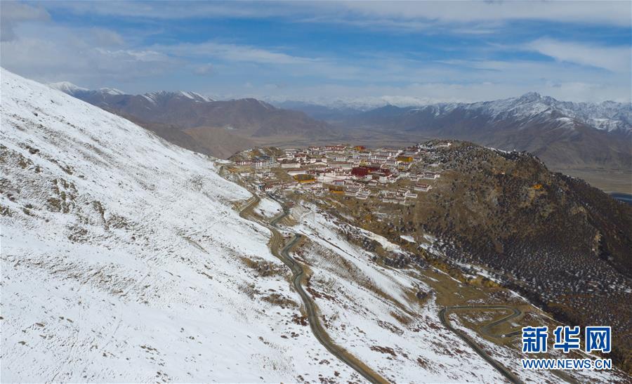 雪后的甘丹寺(4月8日無人機(jī)拍攝)。新華社記者普布扎西攝