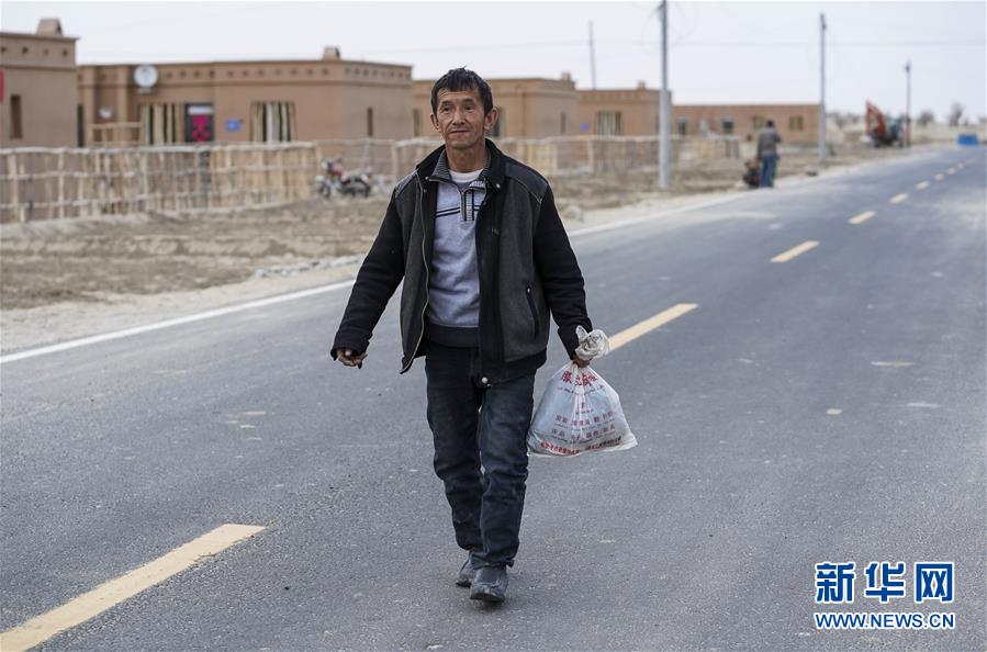 依明在新疆于田縣達(dá)里雅布依小鎮(zhèn)易地扶貧安置點(diǎn)參觀(3月19日攝)。新華社記者 胡虎虎 攝