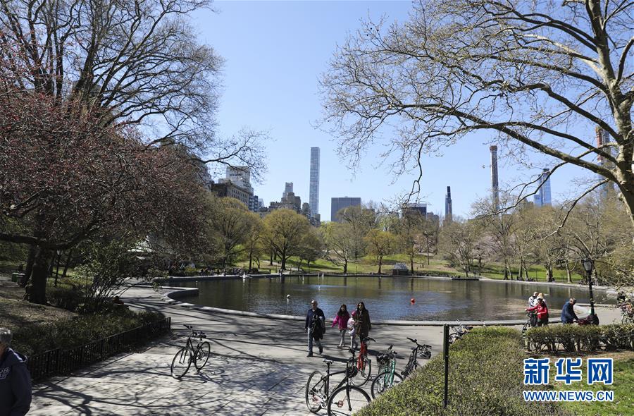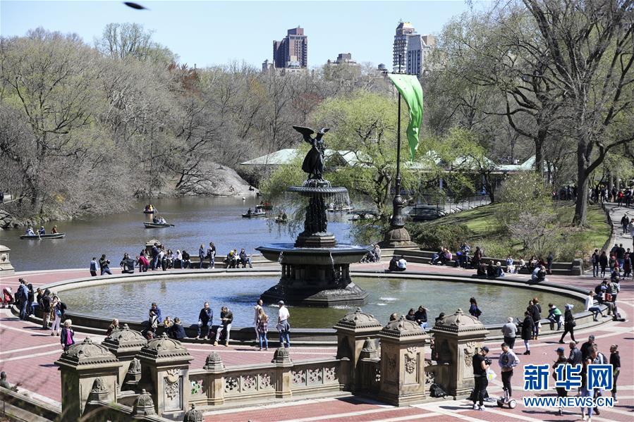 4月16日,人們在美國紐約中央公園游覽。 新華社記者 王迎 攝