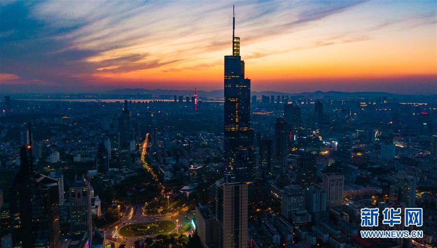 這是4月18日無人機(jī)拍攝的南京城市夜景。 新華社記者 李響 攝