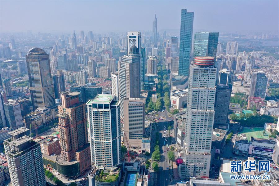 這是4月19日無人機拍攝的南京新街口。 新華社記者 李博 攝
