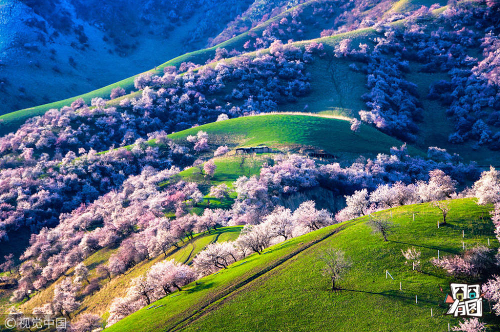 【新疆杏花溝中世紀原始野杏林】新疆杏花溝,位于新疆伊犁新源縣吐爾根鄉(xiāng),這是一片中世紀遺留最大的原始野杏林,集中分布于鞏乃斯河北岸,占地有3萬多畝,綿延十幾公里。這里,曾被評為“人生中不得不去的100個地方”。進入四月,燦若云霞的杏花如期而至,花開漫山,微風拂過便下了一場杏花雨,呈現出“杏花枝上著春風,十里煙村一色紅”美景。隨著陽光射入角度的變化會呈現出不同的美景。