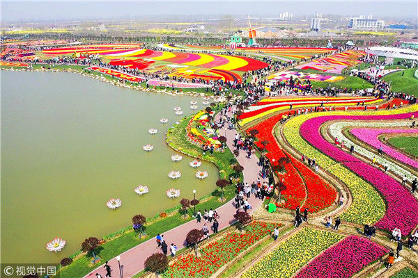 2019年4月6日,江蘇鹽城,大豐荷蘭花海景區(qū),人們在賞花游玩,盡享春光。