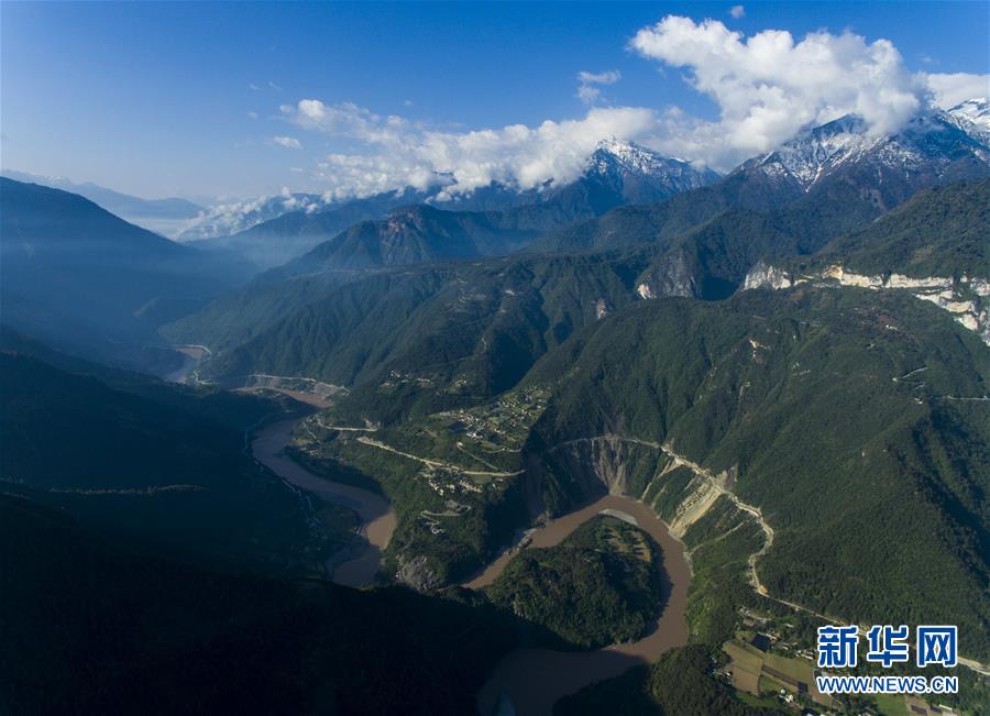 這是4月27日在云南省貢山獨(dú)龍族怒族自治縣丙中洛鎮(zhèn)拍攝的“怒江第一灣”(無人機(jī)拍攝)。 怒江自青藏高原一路奔騰向南流至云南省貢山獨(dú)龍族怒族自治縣丙中洛鎮(zhèn),高黎貢山與碧羅雪山夾江而立,江水順山勢急轉(zhuǎn)形成了一個(gè)氣勢磅礴的半圓形大灣,被稱為“怒江第一灣”。 新華社記者 江文耀 攝