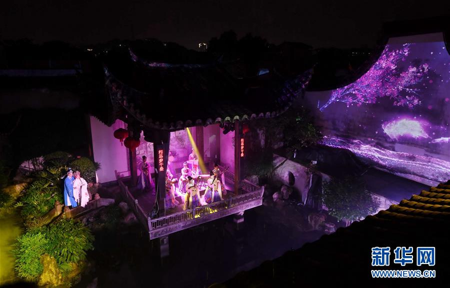5月5日,演員在福州三坊七巷的水榭戲臺(tái)表演歌舞《煙雨坊巷》。 福州三坊七巷為國(guó)內(nèi)現(xiàn)存規(guī)模較大、保護(hù)較為完整的歷史文化名街區(qū),是中國(guó)十大歷史文化名街之一。位于三坊七巷內(nèi)的水榭戲臺(tái)經(jīng)常舉辦傳統(tǒng)文化演出吸引游客慕名前來(lái)觀賞。 新華社記者 林善傳 攝