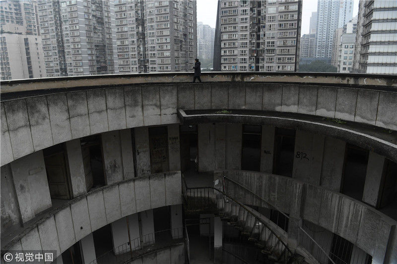 2018年12月6日,重慶江北紅旗河溝汽車站內(nèi),有一棟獨特的八層圓環(huán)狀建筑,底層每天有不少進(jìn)出站的客車通行。