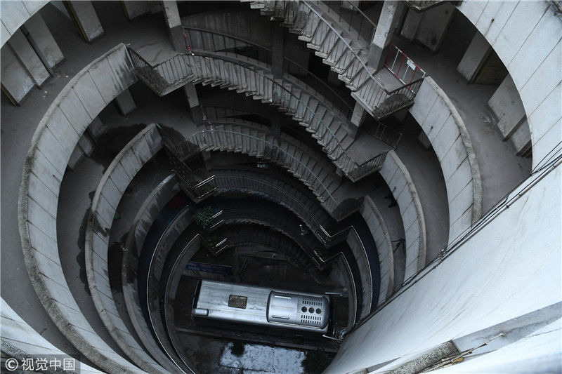 2018年12月6日,重慶江北紅旗河溝汽車(chē)站內(nèi),有一棟獨(dú)特的八層圓環(huán)狀建筑,底層每天有不少進(jìn)出站的客車(chē)通行。