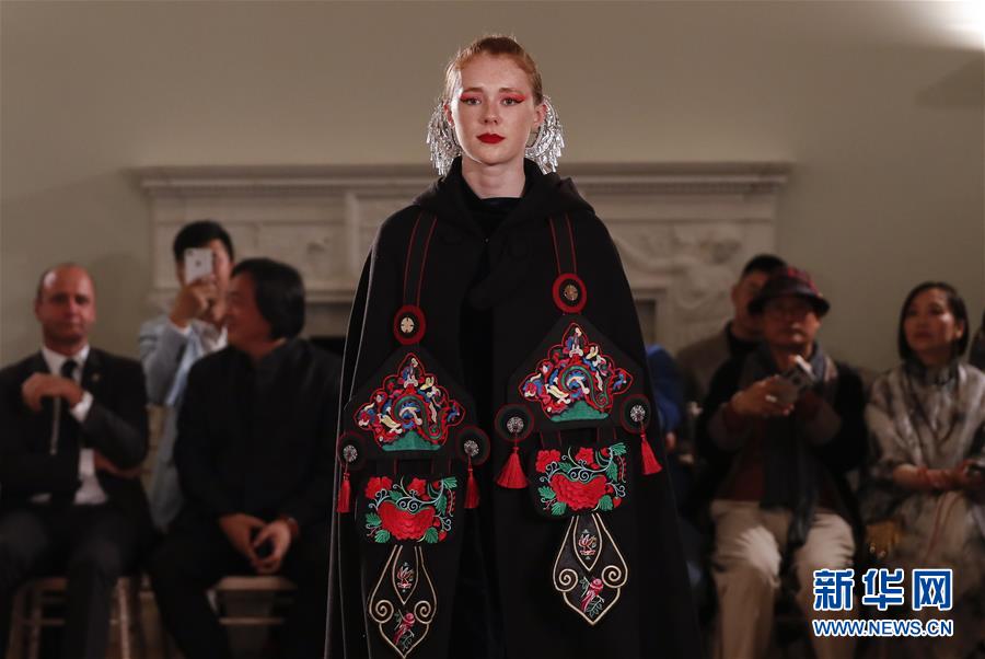5月8日,一名模特在英國倫敦走秀。 由浙江省文化和旅游廳舉辦的浙江傳統(tǒng)工藝創(chuàng)新展8日在倫敦開幕。為期4天的展覽是第五屆倫敦手工藝周的重要活動(dòng)之一。 新華社記者 韓巖 攝