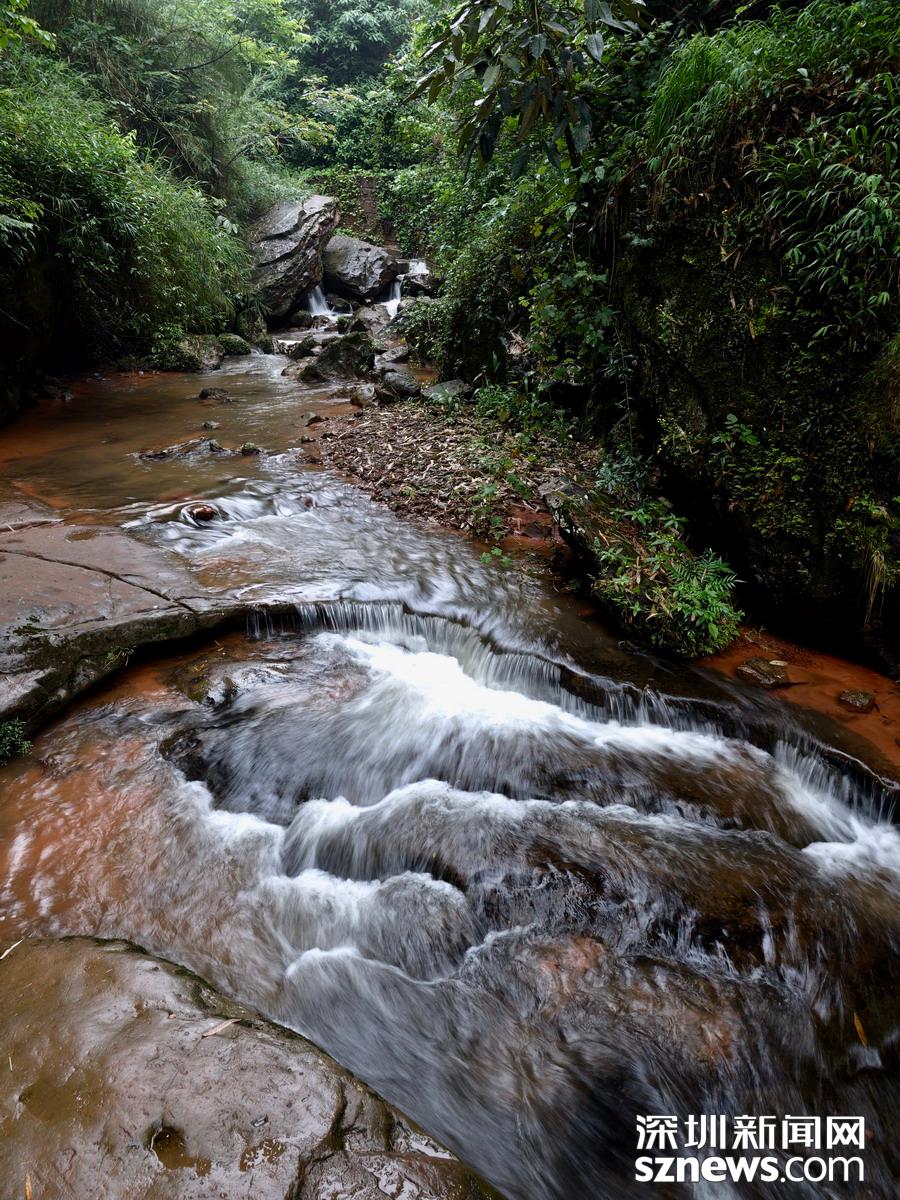 丹霞地貌與大面積古植被和2359 種動(dòng)植物、珍稀瀕危動(dòng)植物共存,是赤水丹霞最獨(dú)特的特征。點(diǎn)綴在原始森林、竹海、桫欏之間,猶如紅寶石鑲嵌在綠洲之中,是世界罕見的綠色丹霞景觀。李仁奇 攝