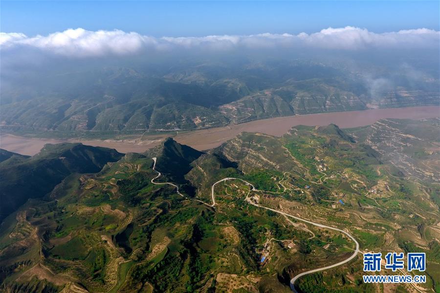 這是2017年9月6日無(wú)人機(jī)拍攝的山西省永和縣黃河乾坤灣。