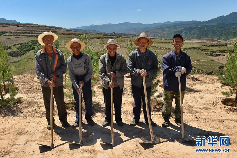 這是2017年5月26日拍攝的在呂梁山上種樹的嵐縣會(huì)里村村民。新華社記者 曹陽 攝