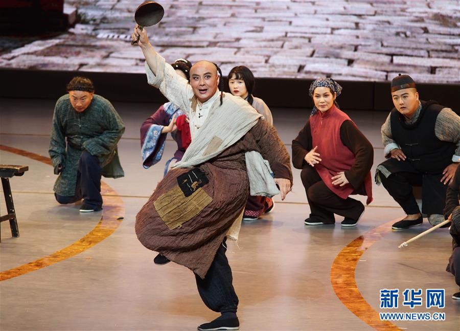 6月2日,蘇州市蘇劇傳習(xí)保護中心演員在第十二屆中國藝術(shù)節(jié)閉幕式上匯報演出獲得文華大獎的蘇劇《國鼎魂》選段。 新華社記者 任瓏 攝