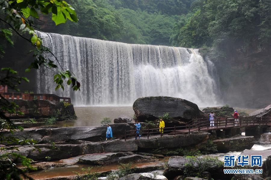 6月5日,游人在貴州赤水丹霞旅游區(qū)“美人梳”瀑布游覽。 貴州遵義赤水市有眾多大大小小的瀑布群,素有“千瀑之市”的美譽(yù),飛瀑美景吸引八方游客前來賞景度假。 新華社記者鄭雅寧攝
