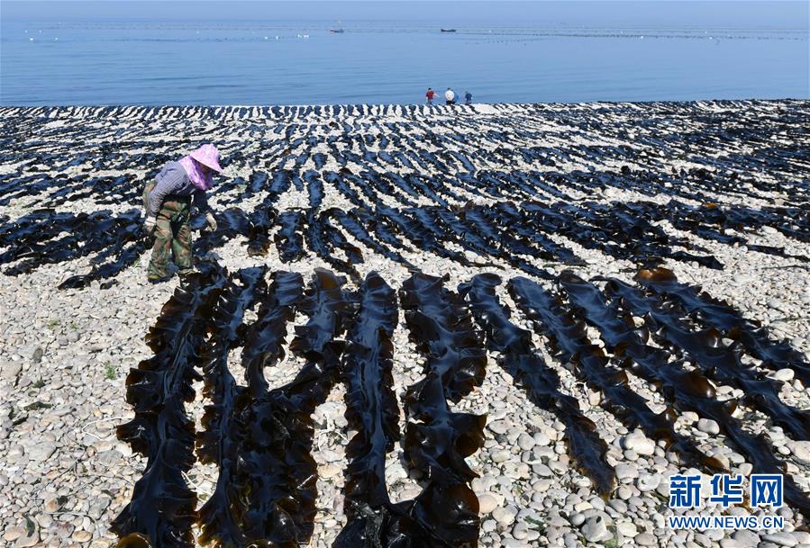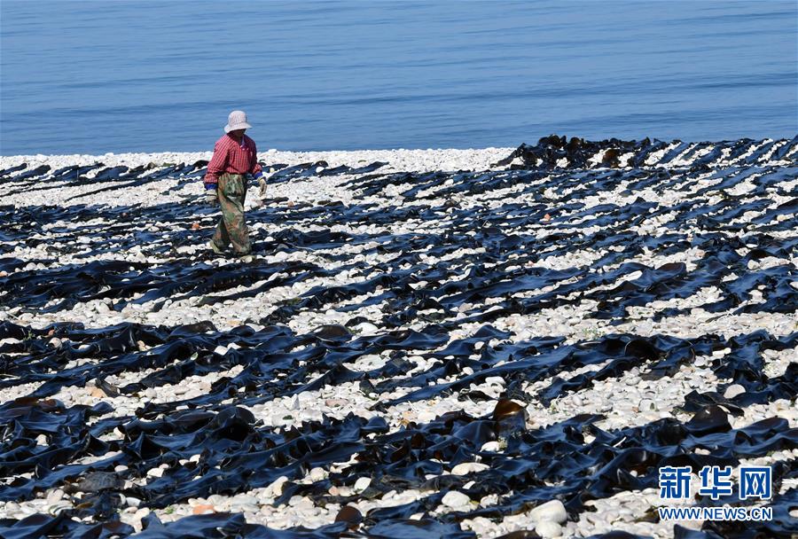 海島居民在晾曬海帶(5月23日攝)。新華社記者 朱崢 攝