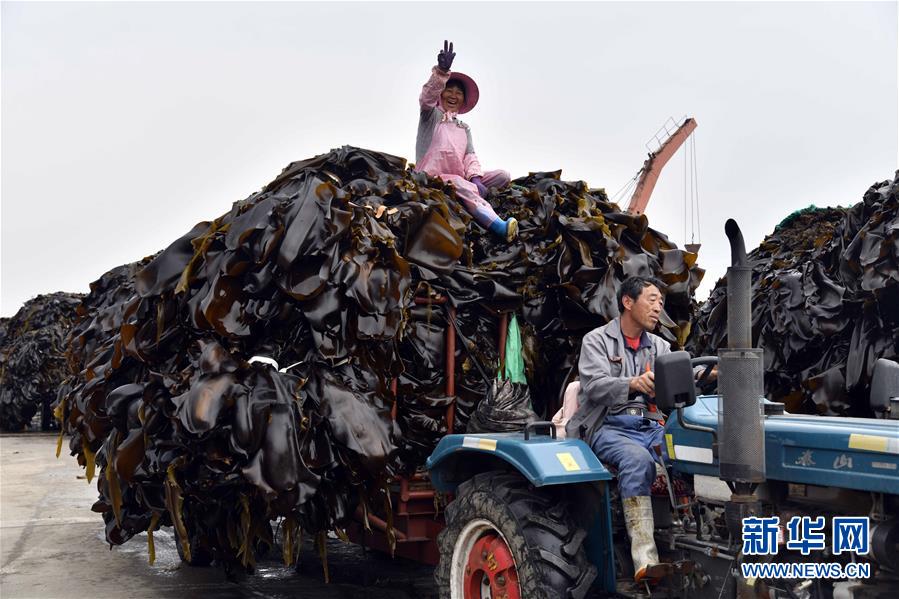 4月10日,霞浦縣長(zhǎng)春鎮(zhèn)海帶養(yǎng)殖戶在埕塢碼頭吊運(yùn)海帶。近日,福建省寧德市霞浦縣30余萬(wàn)畝養(yǎng)殖海帶進(jìn)入收獲季節(jié),當(dāng)?shù)仞B(yǎng)殖戶搶抓晴好天氣,收獲海帶。海帶養(yǎng)殖是霞浦縣群眾增收致富的支柱產(chǎn)業(yè)。2018年該縣海帶產(chǎn)量14萬(wàn)余噸。新華社記者 姜克紅 攝