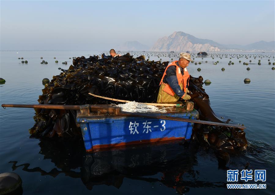 大欽島鄉(xiāng)位于山東省煙臺(tái)市長(zhǎng)島縣北部。每年5月至8月,該島嶼附近的1.3萬(wàn)畝海帶進(jìn)入收獲期。海島居民們每天駕駛小船駛向養(yǎng)殖區(qū)收割海帶,諸多工序有條不紊,迎來(lái)忙碌的“夏收”季節(jié)。2018年,大欽島共收獲鮮海帶18.2萬(wàn)噸,加工干海帶約1.8萬(wàn)噸,產(chǎn)值1.5億元。