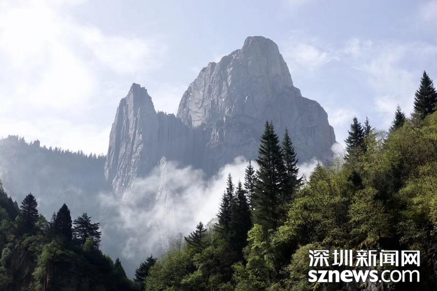 乘坐通往核心景區(qū)的旅游車進(jìn)入臨近壯觀山體的地段,從獨特的角度看到了云霧繚繞的山峰,真有置身仙境的感覺。李仁奇攝