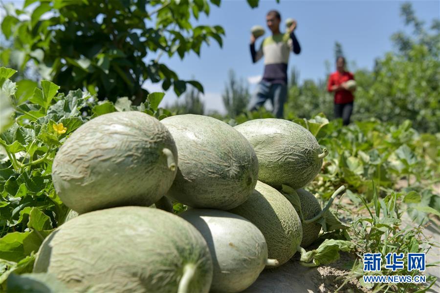 6月23日,新疆喀什地區(qū)巴楚縣的瓜農(nóng)在采摘留香瓜。