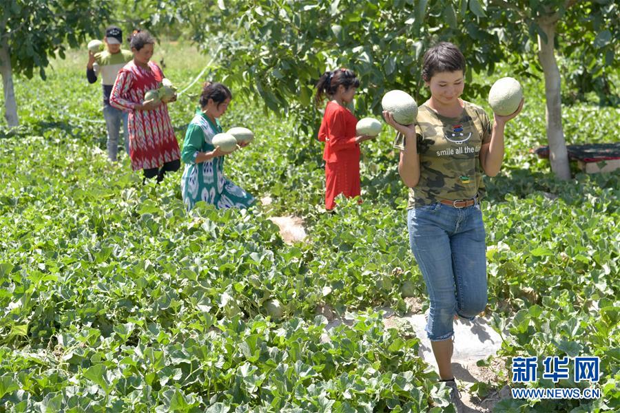 6月23日,新疆喀什地區(qū)巴楚縣的瓜農在采摘留香瓜。新華社記者 丁磊 攝