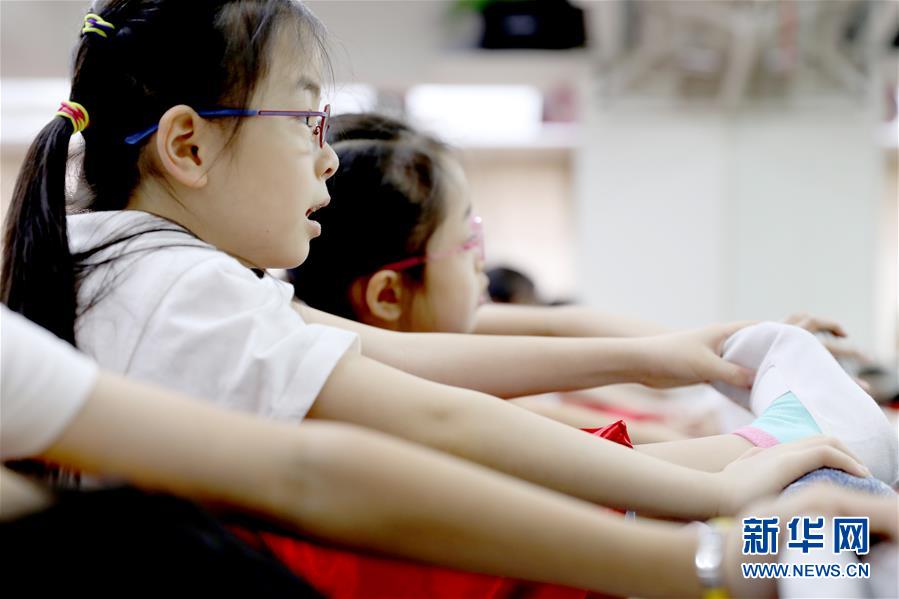 在聲輝粵劇推廣協(xié)會(huì)排練室里,孩子們在壓腿(6月8日攝)。 聲輝粵劇推廣協(xié)會(huì)成立于2003年,是香港重要粵劇藝術(shù)團(tuán)體之一,致力于向青少年推廣粵劇。協(xié)會(huì)目前有兩個(gè)初班,3個(gè)中班,一個(gè)青少年班?;泟∮址Q“廣東大戲”,表演技藝包括“唱做念打”,即唱功、身段、臺(tái)詞、武打,主要流行于廣東、廣西和香港、澳門等地區(qū)。2009年,粵劇被列入聯(lián)合國教科文組織人類非物質(zhì)文化遺產(chǎn)代表作名錄,今年正逢十周年。 新華社記者 吳曉初 攝