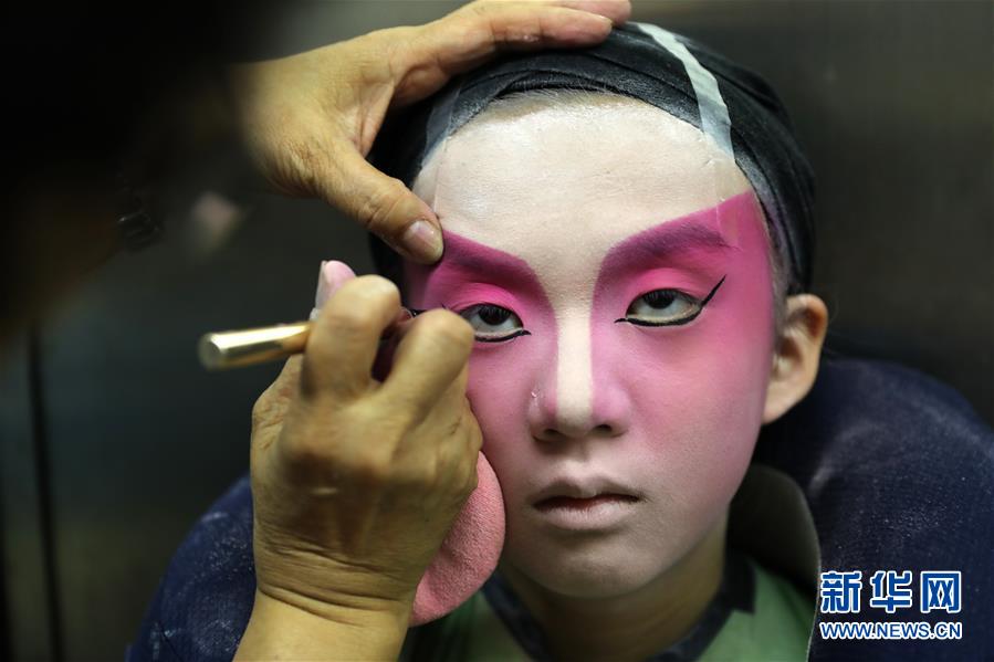 粵劇小演員陸瑞徽在畫經(jīng)典“紅白臉”妝容(6月8日攝)。 聲輝粵劇推廣協(xié)會成立于2003年,是香港重要粵劇藝術團體之一,致力于向青少年推廣粵劇。協(xié)會目前有兩個初班,3個中班,一個青少年班。粵劇又稱“廣東大戲”,表演技藝包括“唱做念打”,即唱功、身段、臺詞、武打,主要流行于廣東、廣西和香港、澳門等地區(qū)。2009年,粵劇被列入聯(lián)合國教科文組織人類非物質文化遺產(chǎn)代表作名錄,今年正逢十周年。 新華社記者 吳曉初 攝