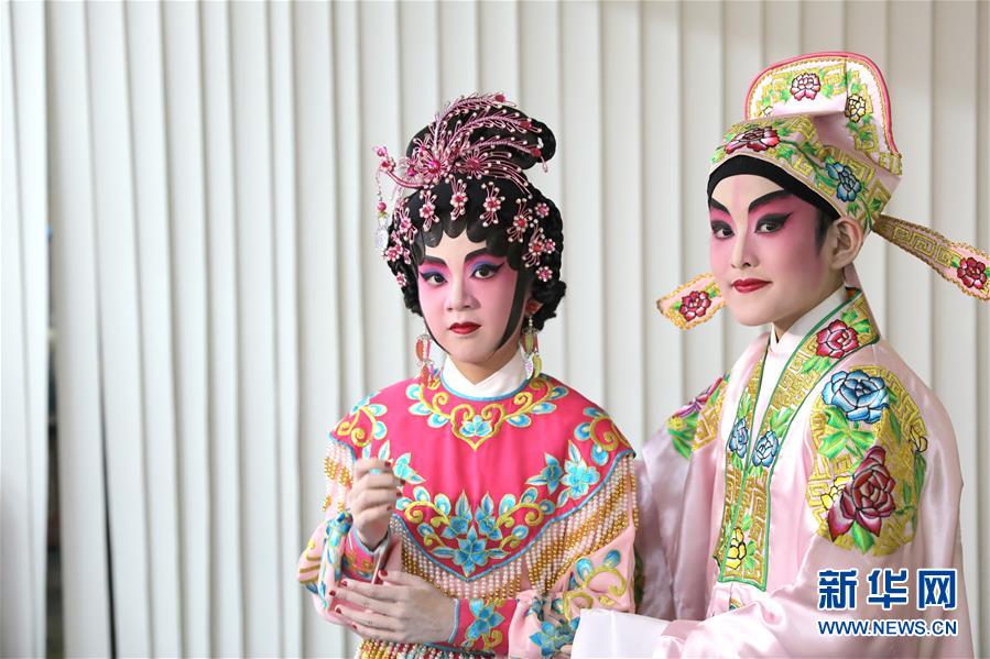 陸瑞徽(左)和利文喆在表演折子戲《艷曲醉周郎》(6月8日攝)。 聲輝粵劇推廣協(xié)會成立于2003年,是香港重要粵劇藝術團體之一,致力于向青少年推廣粵劇。協(xié)會目前有兩個初班,3個中班,一個青少年班?;泟∮址Q“廣東大戲”,表演技藝包括“唱做念打”,即唱功、身段、臺詞、武打,主要流行于廣東、廣西和香港、澳門等地區(qū)。2009年,粵劇被列入聯(lián)合國教科文組織人類非物質文化遺產(chǎn)代表作名錄,今年正逢十周年。 新華社記者 吳曉初 攝