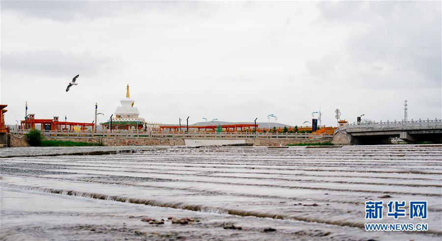 7月6日,青海省剛察縣沙柳河里的湟魚躍起向上洄游。 新華社記者 吳剛攝