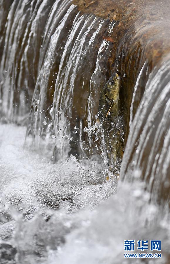 7月6日,在青海省剛察縣沙柳河里,湟魚在躍起向上洄游。 新華社記者 費(fèi)茂華攝