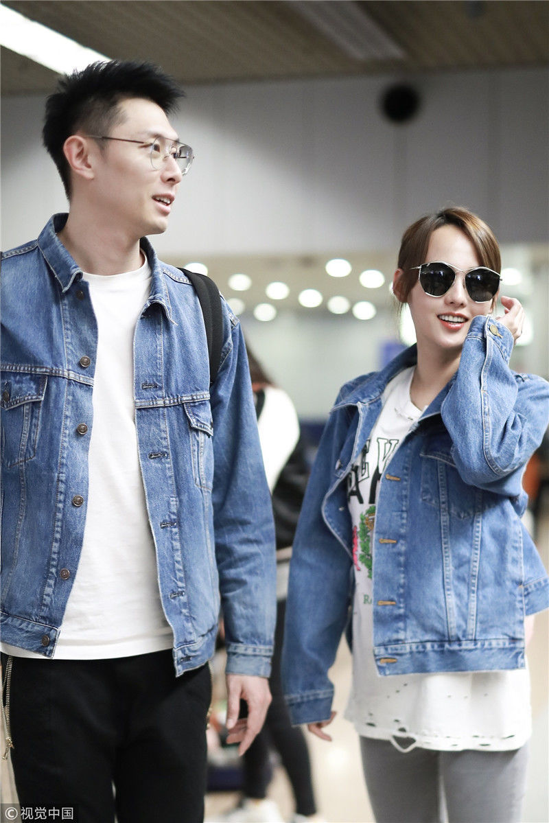 2019年4月1日,張嘉倪與老公買超現(xiàn)身機場,從廣州飛往北京。兩人同穿情侶牛仔裝,一路對視熱聊感情超甜,張嘉倪對鏡頭熱情揮手舉公仔,親和力MAX。匿名/視覺中國編輯/陳進